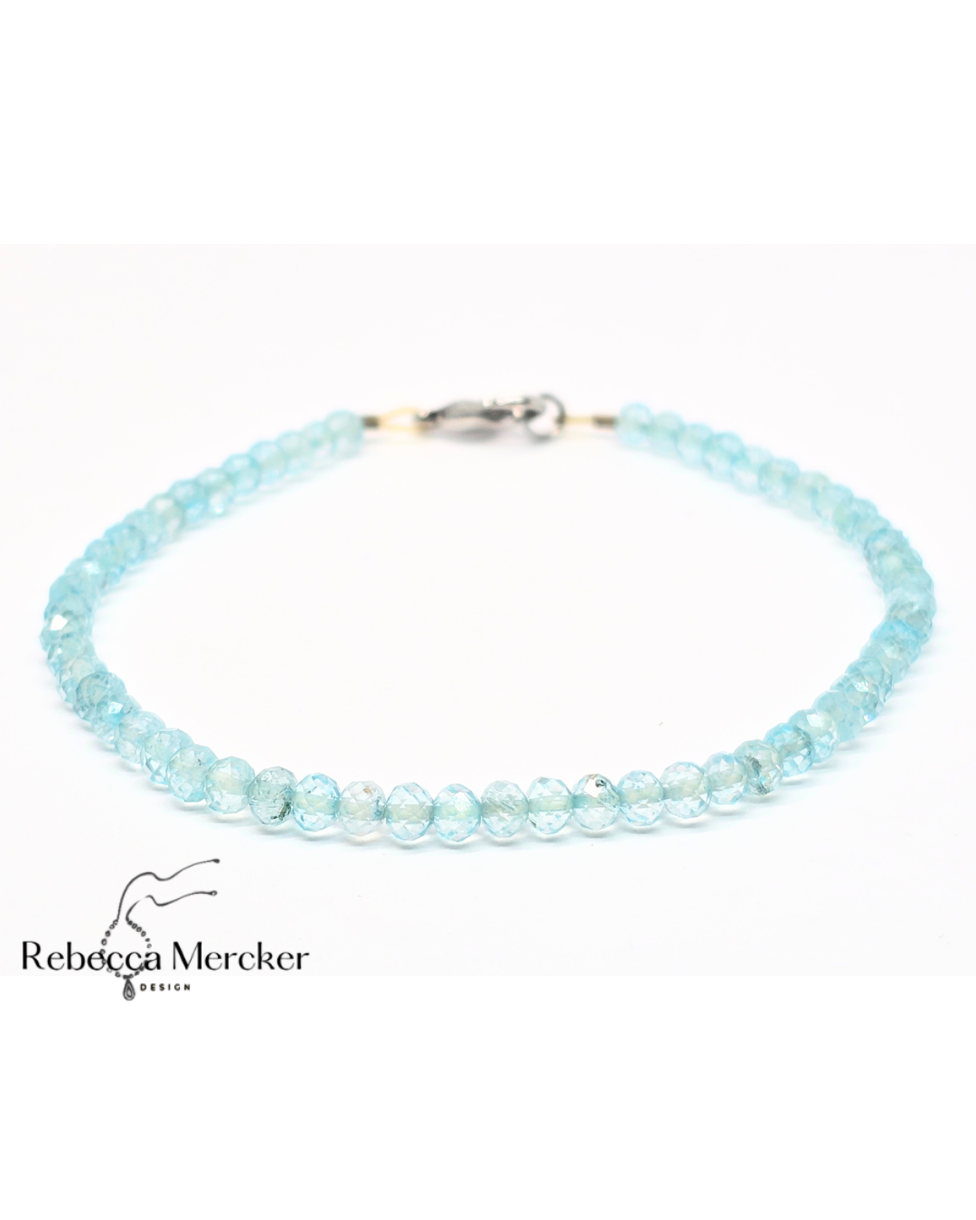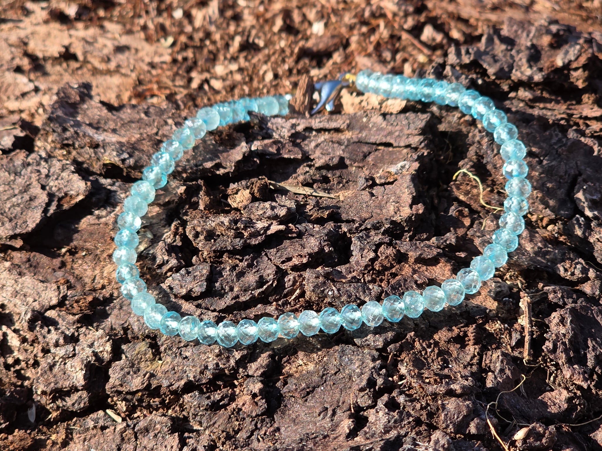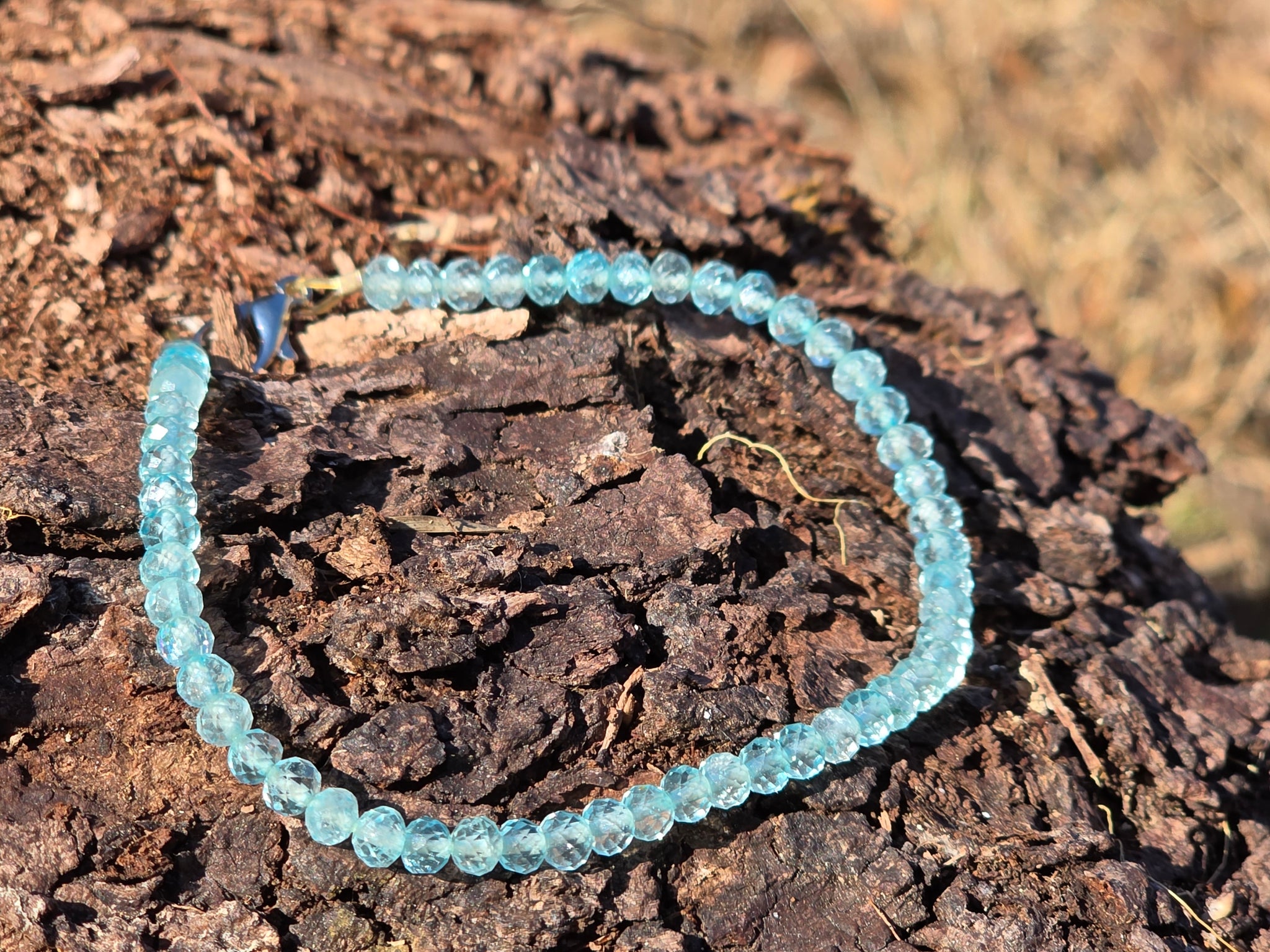 This eye-catching sky blue topaz bracelet is crafted from natural stones (treated), skillfully faceted for uniformity. These stones are sourced locally in central Florida, adding unique appeal.