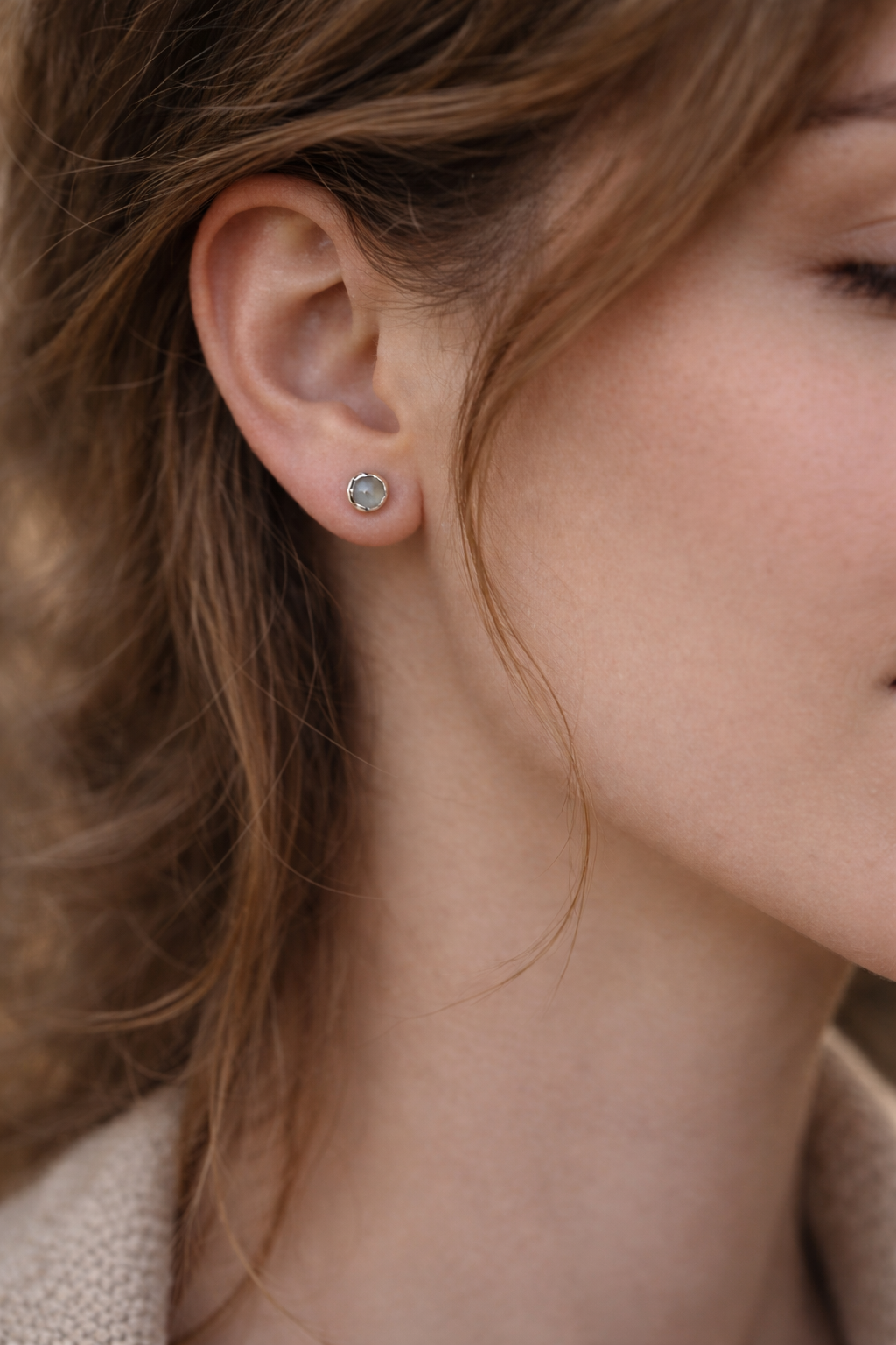 These stud earrings are crafted in sterling silver, featuring beautiful blue aquamarine stones. The earrings combine durability and elegance, making them suitable for both everyday wear and special occasions. Aquamarine, known for its calming properties, adds a sophisticated touch while complementing various skin tones.